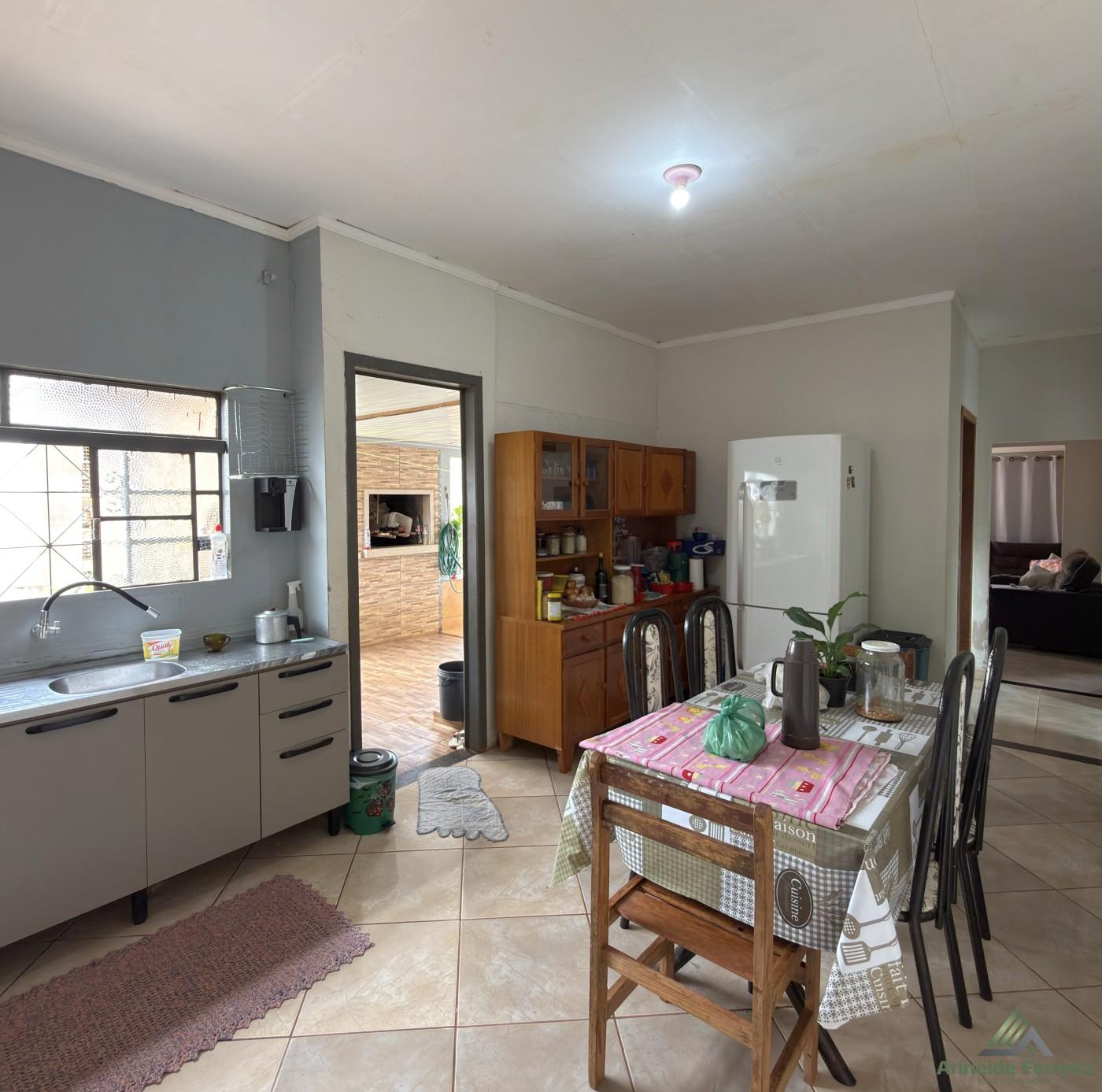 A residência dispõe de três dormitórios, sendo uma suíte, e um banheiro social, atendendo com comodidade às necessidades da família. Conta também com uma varanda gourmet com churrasqueira, ideal para momentos de lazer, além de uma área de serviço e uma vaga de garagem.